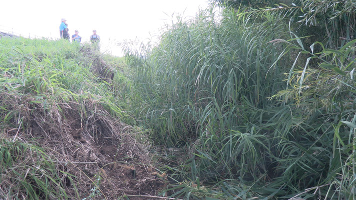 豊平川のサケの産卵環境を良くするため、ツルヨシを取り除く活動を行いました。活動場所である平和大橋上流の右岸側の分流は、ツルヨシの繁茂のため、産卵できる場所が狭められていました。