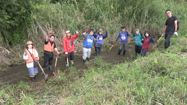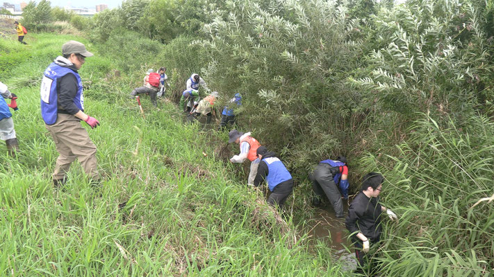 参加者57名(SWSP10名、イオン北海道さま21名、KDDI北海道総支社さま14名、サンセリテ札幌さま2名、札幌東高校生物部さま10名)が、ツルヨシの抜き取りに取り組み、産卵しやすい環境を復元することができました。